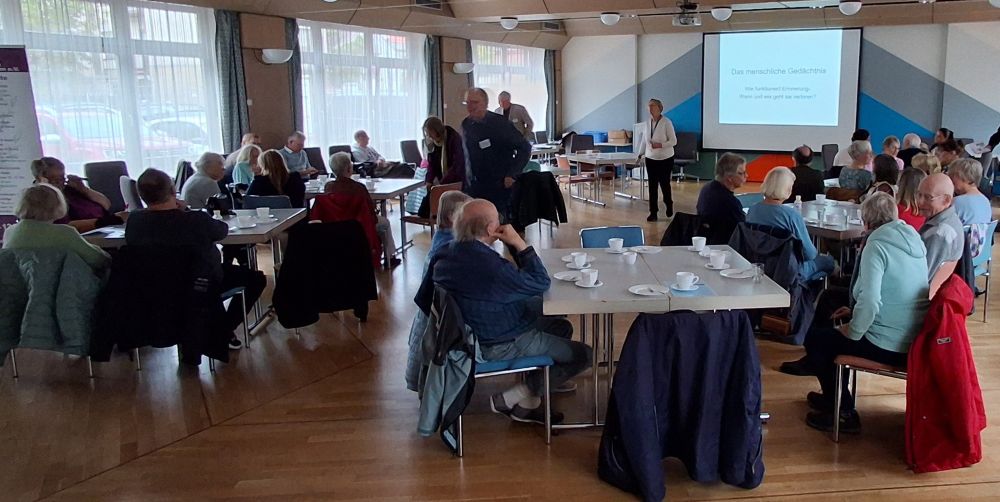 Im weiteren Verlauf ging der Referent auf Therapiemöglichkeiten ein. Vorrangige Ziele seien die Stabilisierung der Hirnleistung, die Verbesserung der Alltagskompetenz und die Reduzierung von Verhaltensauffälligkeiten. Unterstützt werde die medizinische Behandlung durch soziale Aktivitäten und regelmäßige Kontakte, die sich nachweislich positiv auf den Krankheitsverlauf auswirken. Soziale Netzwerke und ein aktiver Lebensstil senken das Risiko einer Demenzerkrankung, während Isolation das Risiko erhöht und die Lebenserwartung um mehrere Jahre verkürzen kann. Praktische Tipps zu Bewegung, Ernährung und medikamentöser Therapie rundeten den Vortrag ab.